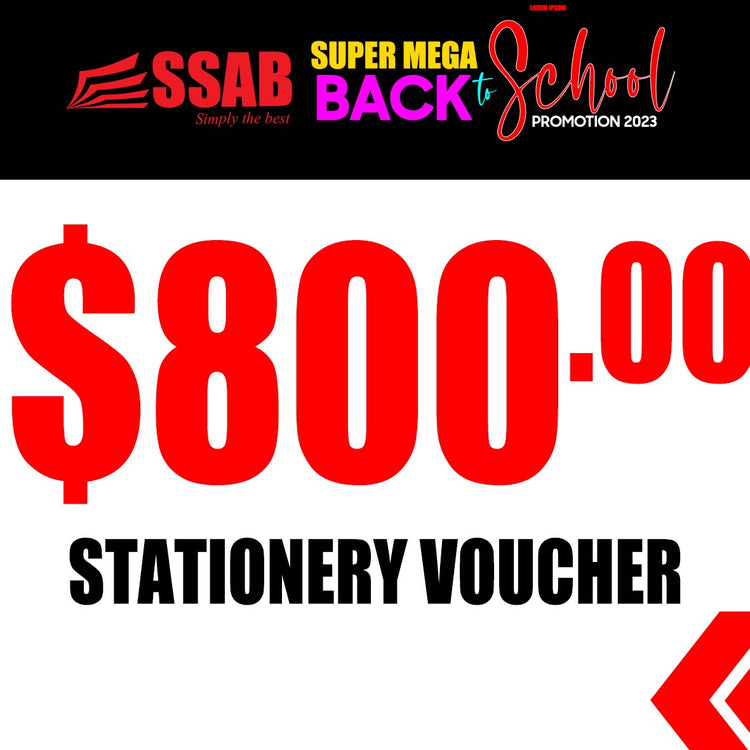 SSAB STATIONERY VOUCHER can be used for purchasing  items worth its given value. Gift voucher cannot be redeemed for cash.